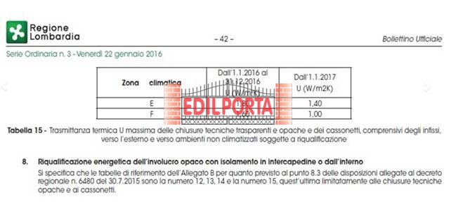 in regione Lombardia sono stati abbassati i valori di trasmittanza massima dei